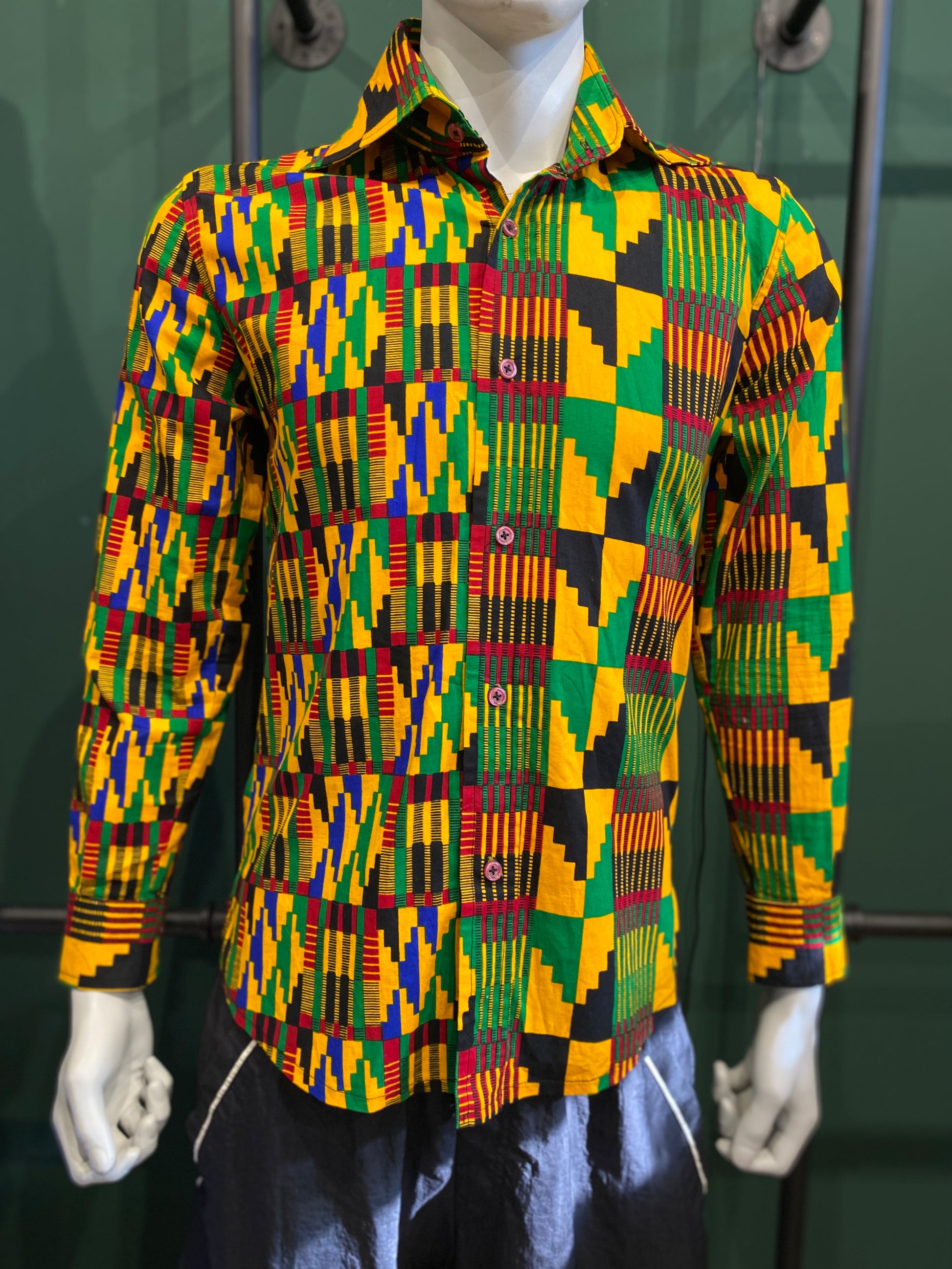 Dieses farbenfrohe Hemd kombiniert kräftige Farben und traditionelle Muster. Der auffällige Druck in Gelb, Schwarz, Grün und Rot verleiht jedem Outfit einen lebendigen Akzent. Ideal für lässige Anlässe oder besondere Events, sorgt es für Gesprächsthemen. Der lockere Schnitt bietet Tragekomfort und Freiheit in der Bewegung. Perfekt für modebewusste Individuen, die ihren Stil ausdrücken möchten. Kombiniere es mit Jeans oder Shorts für einen entspannten Look. Ein echtes Highlight in jedem Kleiderschrank.