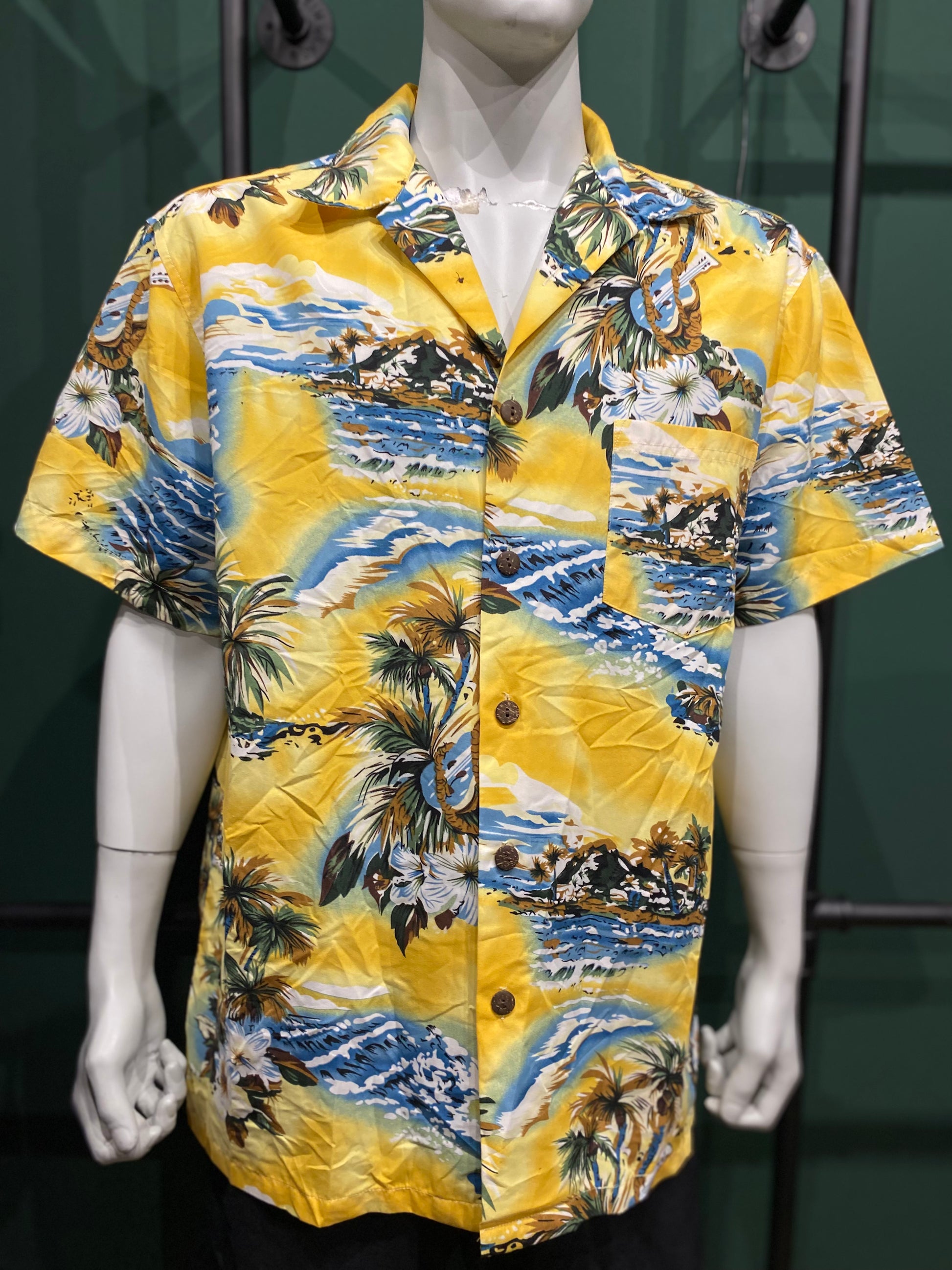 Dieses fröhliche, gelbe Hawaiian Shirt bringt Urlaubsfeeling in deinen Alltag. Mit einem lebhaften Tropenmuster aus Palmen und Wellen, ist es das perfekte Oberteil für sommerliche Ausflüge oder entspannte Grillabende. Die lockere Passform sorgt für höchsten Tragekomfort, während die kurzen Ärmel ideal für heiße Tage sind. Kombiniere es mit Shorts oder lässigen Jeans für einen stilvollen Look. Der zeitlose Stil dieses Shirts macht es zum perfekten Begleiter für jede Gelegenheit. Fühle den Sommer mit diesem auffälligen Piece und setze ein modisches Statement.