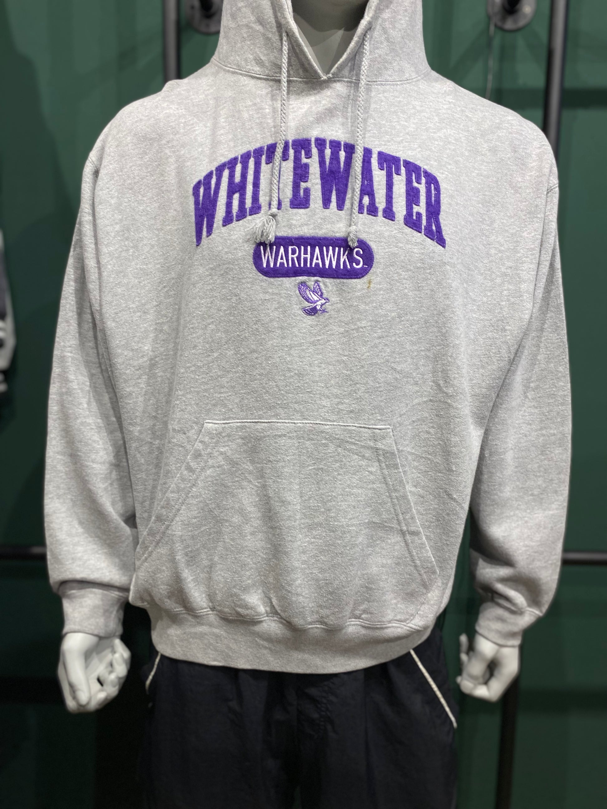 Der graue Hoodie mit einem auffälligen lila Schriftzug 'WHITEWATER WARHAWKS' ist ideal für entspannte Freizeitlooks. Die Kapuze sorgt für zusätzlichen Komfort und Wärme, während die Kängurutasche praktische Aufbewahrungsmöglichkeiten bietet. Mit seiner bequemen Passform eignet sich dieser Hoodie perfekt für lockere Tage oder sportliche Aktivitäten. Das hochwertige Baumwollmaterial sorgt für ein angenehmes Tragegefühl. Ein Must-have für Fans der Warhawks oder einfach Liebhaber von lässigem Style.